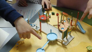 Nun waren die professionellen Spielplatzplaner*innen am Zug und vier Spielplatzbauer haben vier unterschiedliche Modele geliefert: Die Expert*innen-Runde der Kinder nannten sie Nudel, Obst- und Gemüse, Pommes und Picknickspielplatz. Darüber haben 102 Kinder aus der Peter-Pan- und Geisenweide-Grundschule noch einmal abgestimmt – wie, könnt Ihr unten in der Pressemitteilung lesen.
