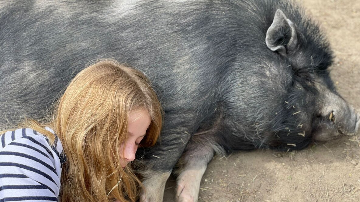 Immer wenn ich auf den Bauernhof kam, stand Tristan am Zaun seines Geheges und wartete auf mich. Er hat immer gegrunzt und mit dem Schwanz gewedelt. Das ist ein Zeichen dafür, dass er sich freut, hat Regine mir erklärt. Und ich habe mich natürlich auch immer gefreut. Ich habe ihn dann zur Begrüßung habe ich ihn erstmal gebürstet. Man denkt ja, Schweine sind dreckig – aber nachdem ich da war, war Tristan nicht nur das beste, sondern auch das sauberste Schwein der Welt! Es war so schön, mit ihm spazieren zu gehen, ihm vorzulesen oder einfach nur mit ihm zu kuscheln.